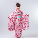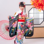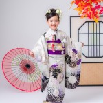 女児の七五三の定番の衣装は、色鮮やかな着物です。赤やピンク、紫などのカラフルな色合いが特徴的で、小花や鳥、菊などのモチーフが入ったものが人気です。また、袖や裾には金銀の刺繍が施されており、華やかな印象を与えます。